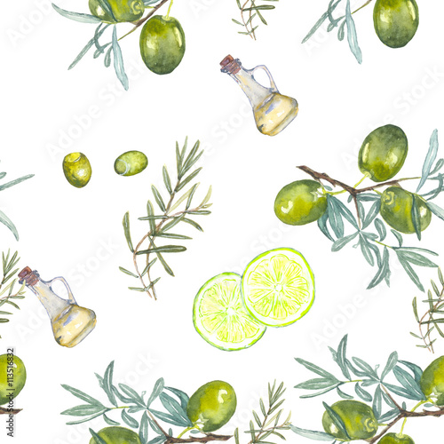 Fototapeta Oliwki Wzór Rysunek Akwareli Drzewo Oliwne I Wapna