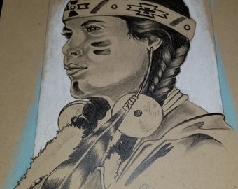 Oryginalny Rysunek Ołówkiem Portret Dziewczyny Z Wielkie Oczy