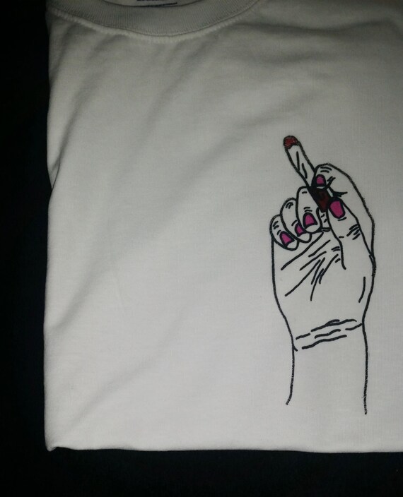 Ręka Trzymająca Papierosa Rysunek Po Stronie Koszulkibiała Koszulka Tylko
